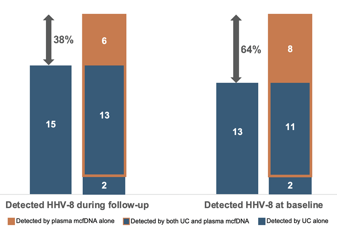 Conclusions: Plasma mcfDNA sequencing may improve UC in detection of HHV-8 infection, especially in immunocompromised outpatients, in whom early detection may facilitate appropriate management to prevent severe KS disease. The potential added benefit of the detection of other pathogens by mcfDNA sequencing may be particularly relevant for this population.