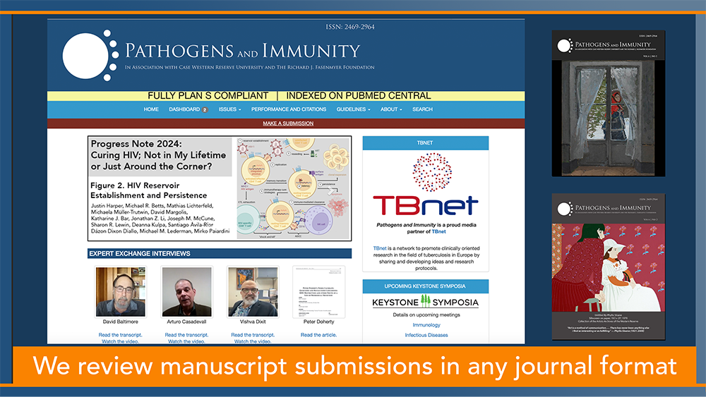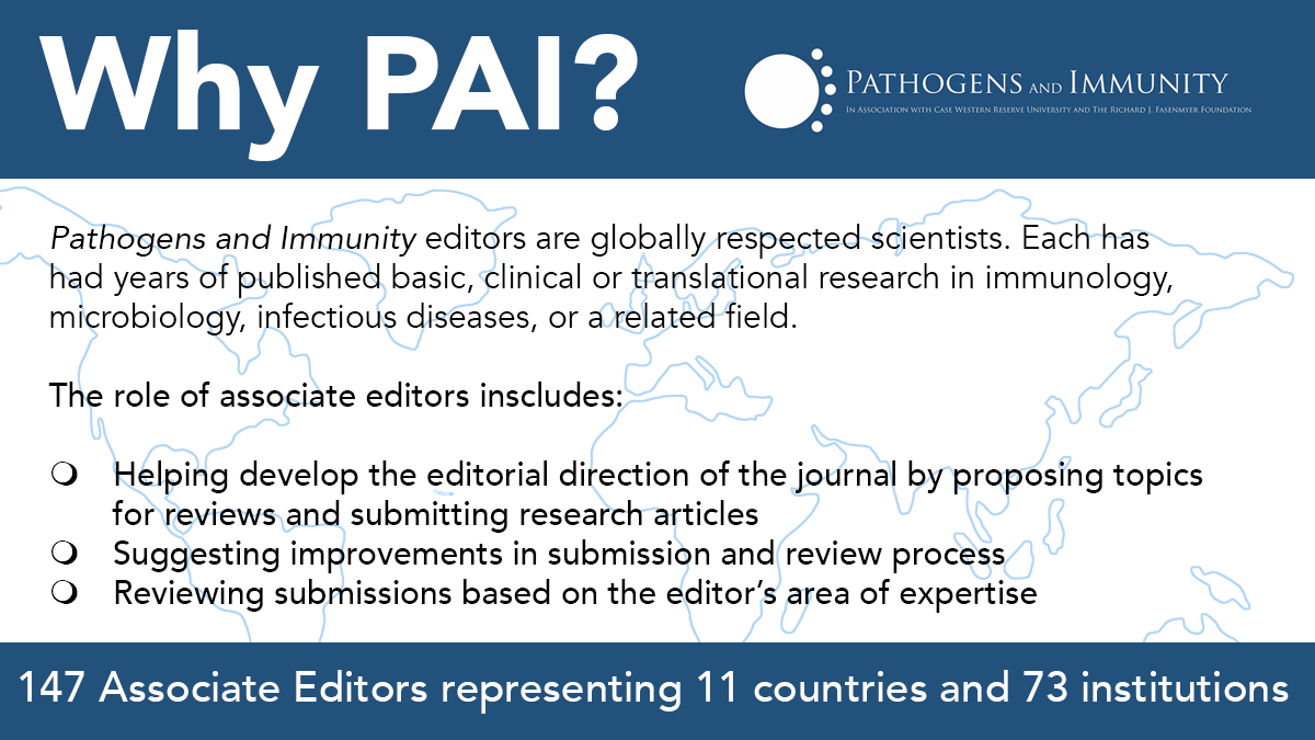 Pathogens and Immunity is supported by a lifetime endowment to Case Western Reserve University. You can learn more about the focus, scope, and peer review process on the journal’s website.
