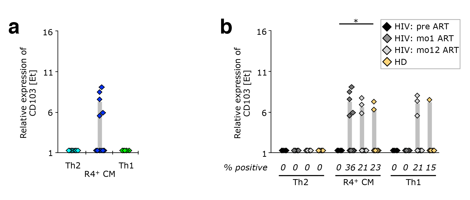 This is supported by our findings that, after one month of therapy, CD103 transcripts were specifically expressed by CCR4+ TCM, while
