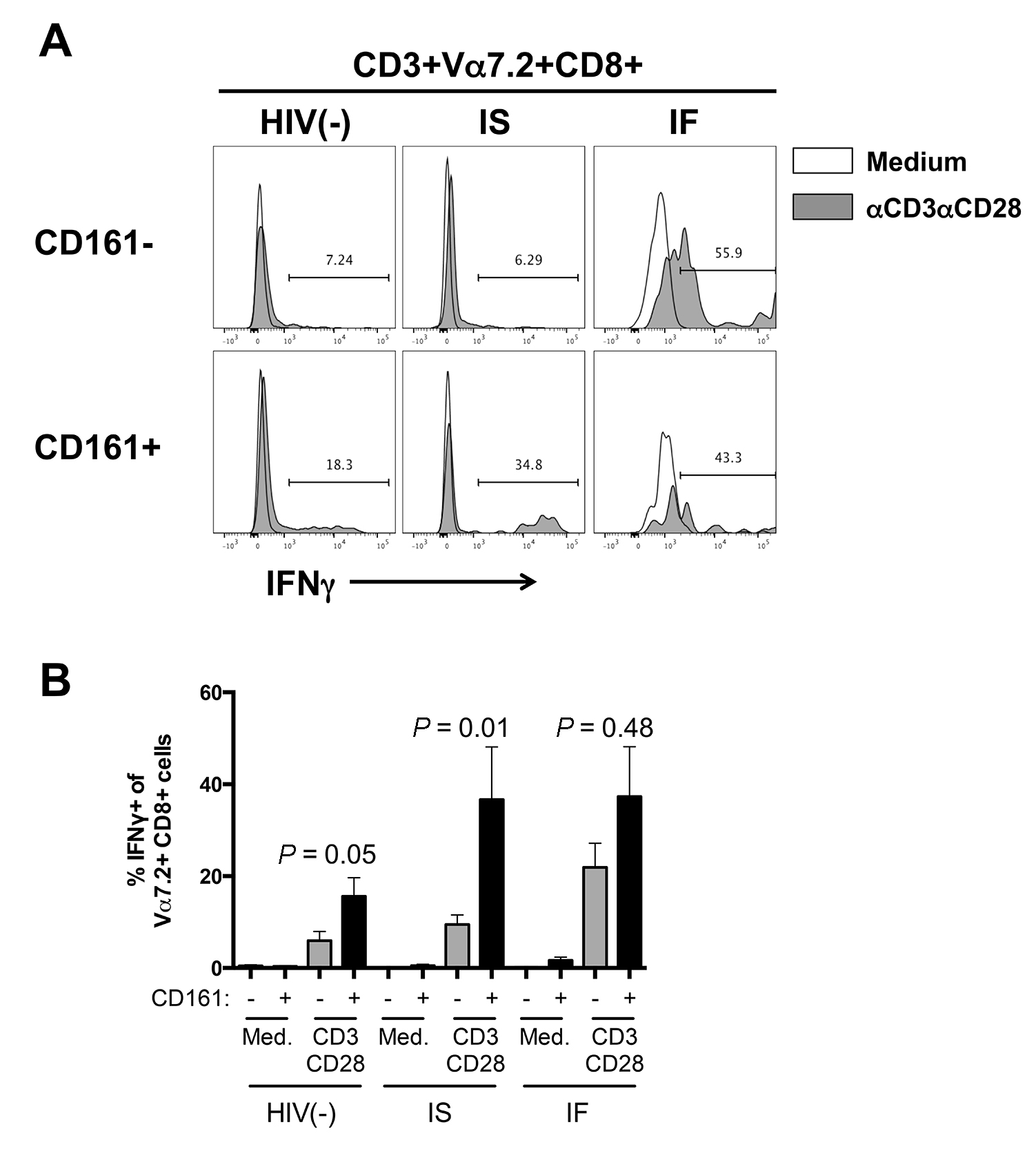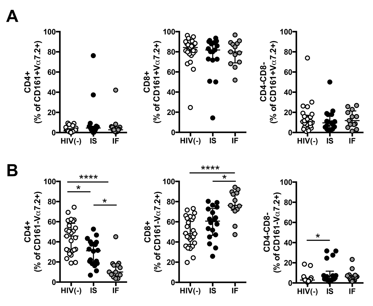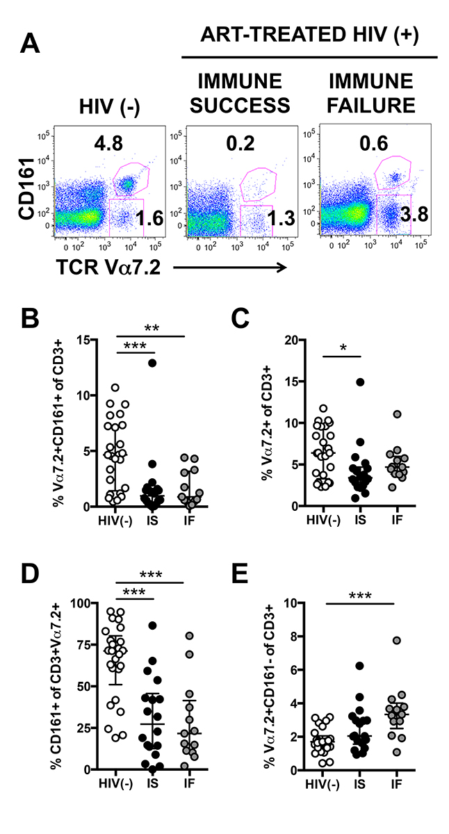Conclusions: Our findings suggest that in immune failure patients, the reduction in peripheral MAIT cells is due, at least in part, to a loss in CD161 expression, and is not merely the result of trafficking into mucosal tissues or cell death. These CD161- cells retain their function.