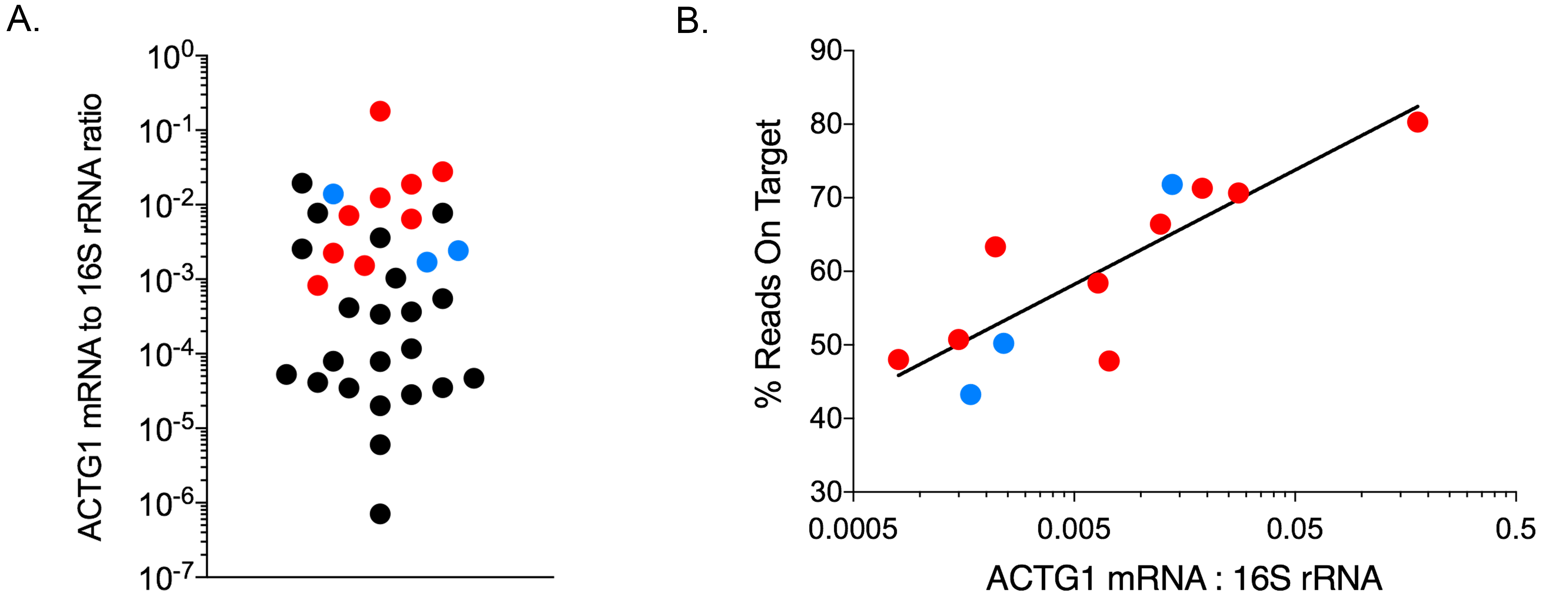 blue (diarrhea of other causes) were selected for sequencing. B) ACTG1:16S