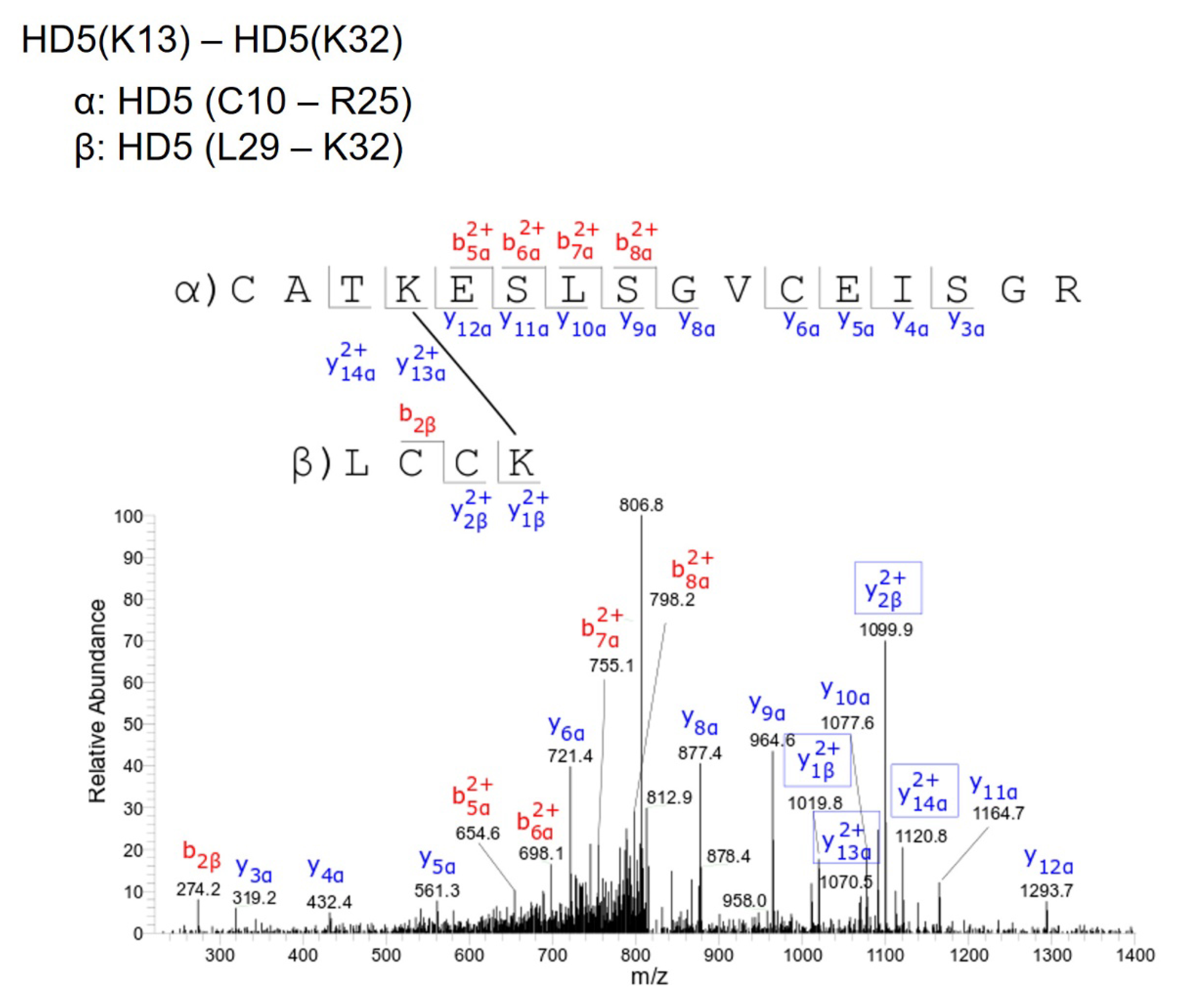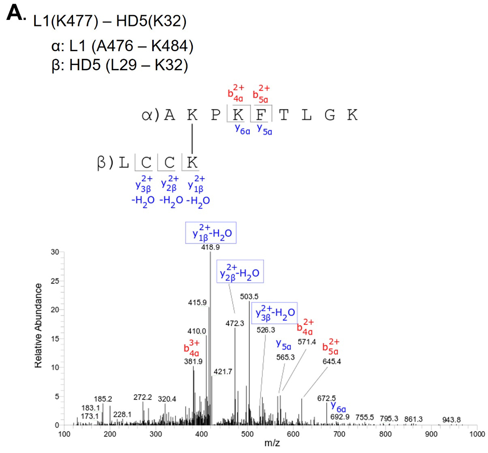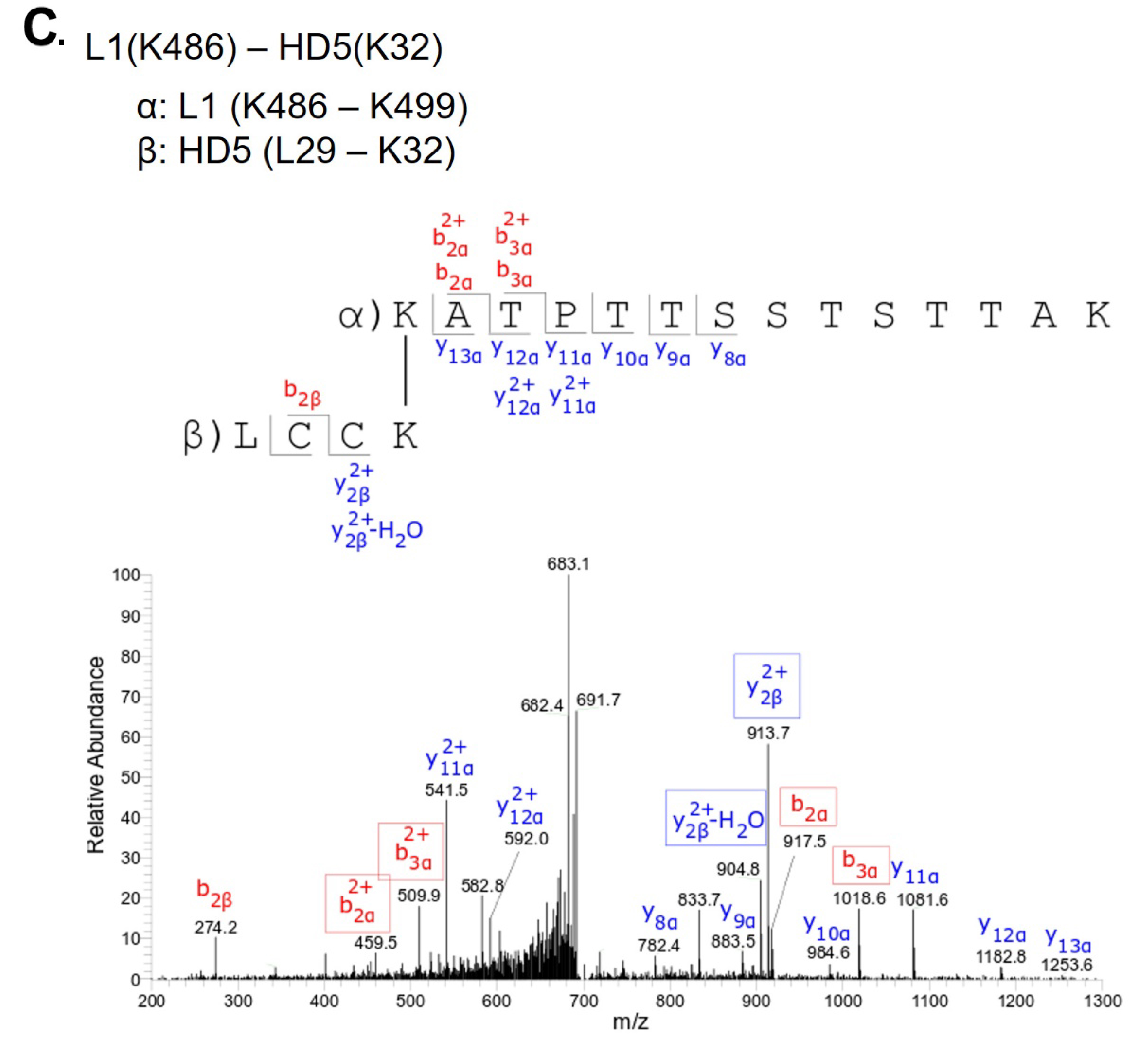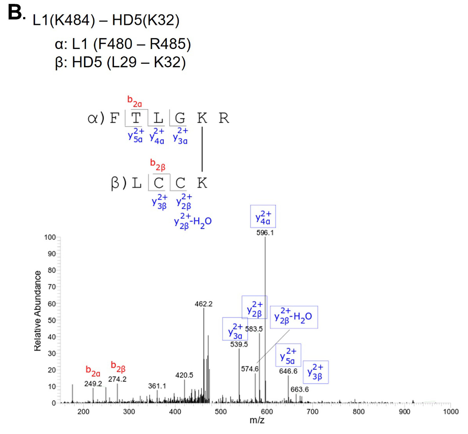 Table 1. Mass spectrometry detected BS3 crosslinks between L1 and HD5-R13K/R32K