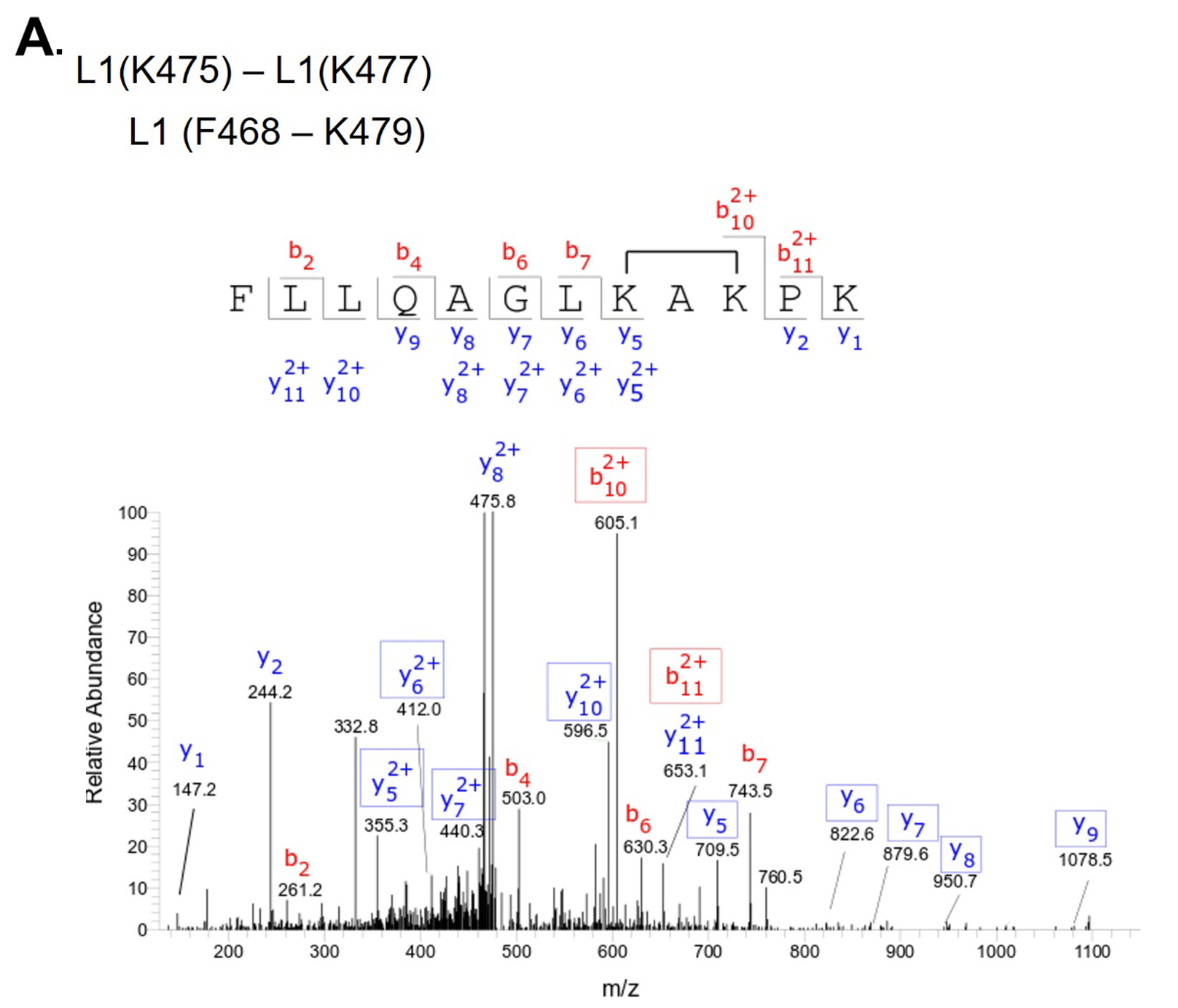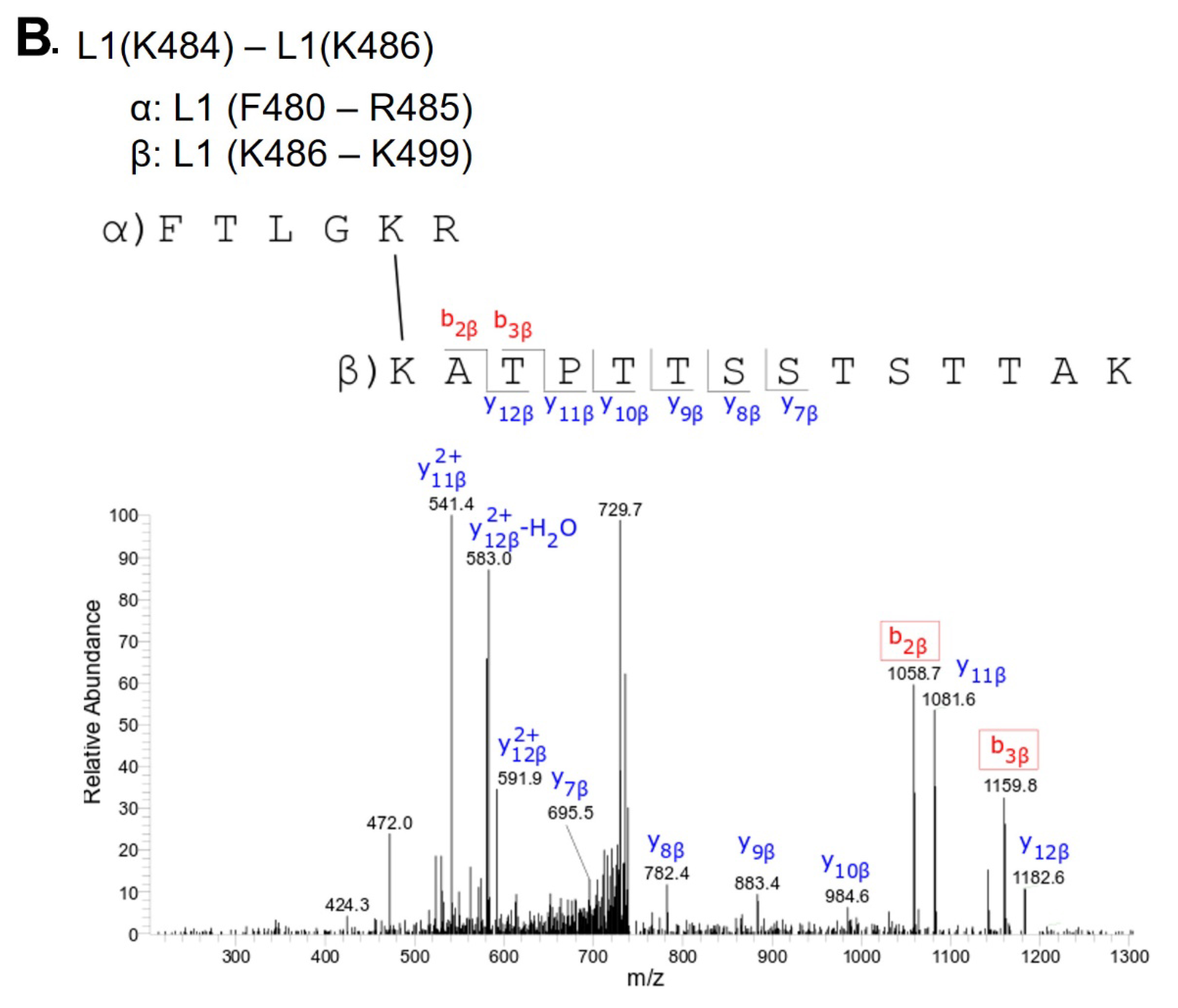 Supplementary Table 1. Mass spectrometry detected BS3 intra-protein crosslinks within L1