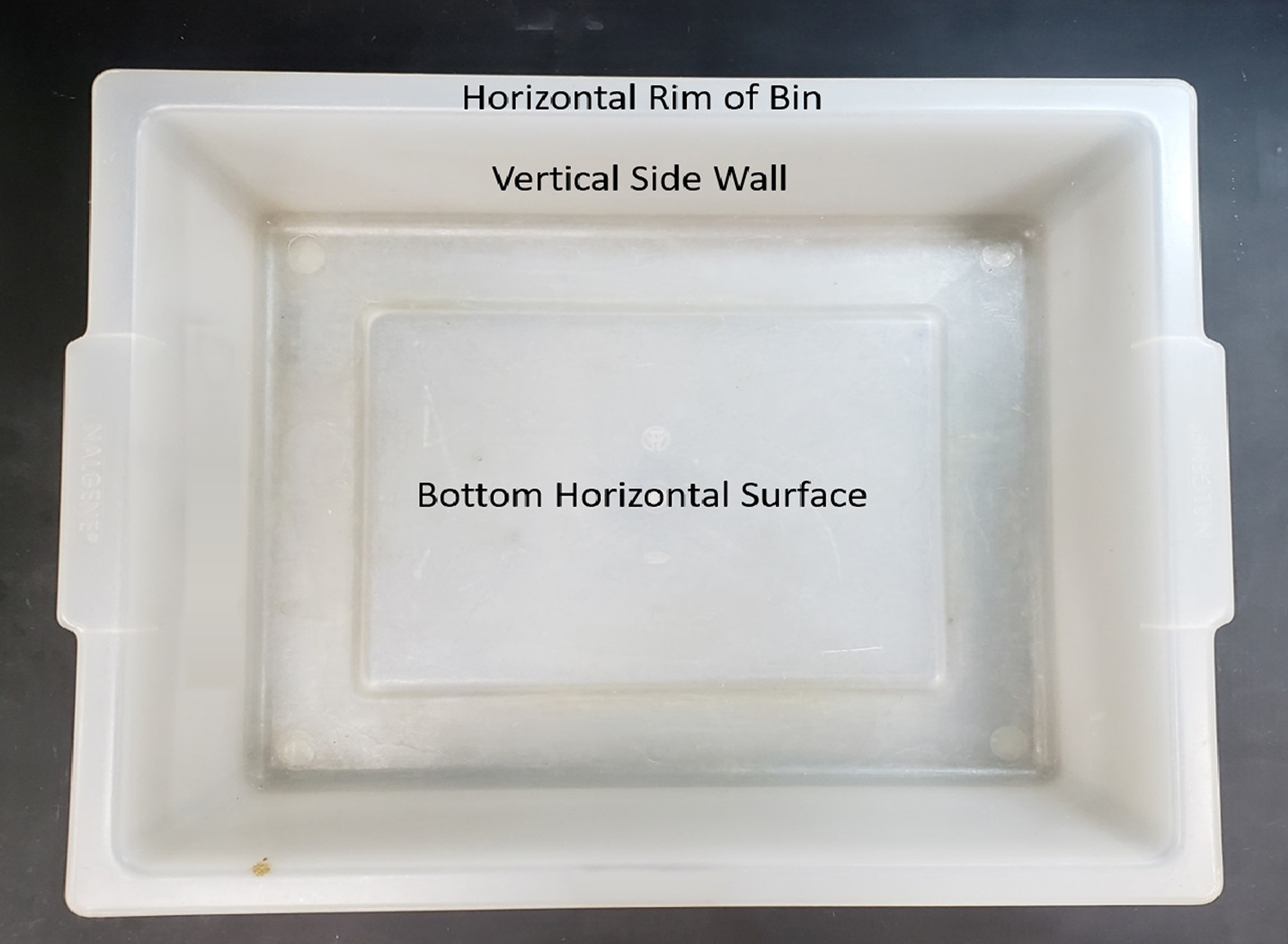 Figure 1. Pictures of the bin used for testing and areas where the test organisms were applied.