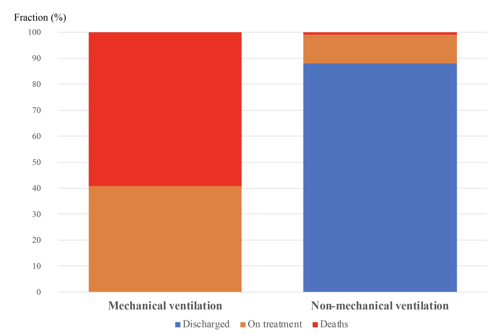 Figure 3. Clinical outcomes according to use of mechanical ventilation before TCZ administration.