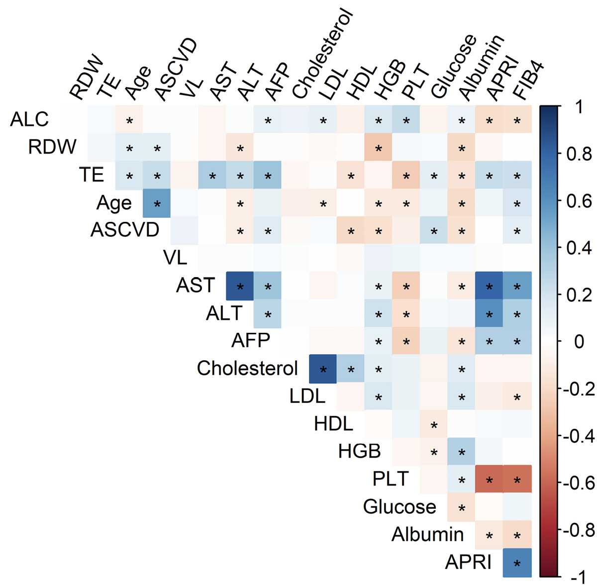 Results: The cohort was 97% male, 55% African American, 26% with diabetes mellitus, 67% with hypertension, and 66% with tobacco use. After TE, 3% were subsequently diagnosed with HCC, and 12% (n=208) died. Most deaths (n=189) were due to non-liver causes. The TE score associated with prevalent CVD, positively correlated with atherosclerotic cardiovascular disease (ASCVD) 10-Year Risk Score, age, RDW, and negatively correlated with ALC. Patients with anisocytosis (RDW above 14%) or lymphopenia (ALC level under 1.2x109/L) had greater subsequent all-cause mortality, even after adjusting for age, TE score, and comorbidities. TE score, and to a modest degree RDW, were associated with subsequent liver-associated mortality, while TE score, RDW, and ALC were each independently associated with non-liver cause of death.