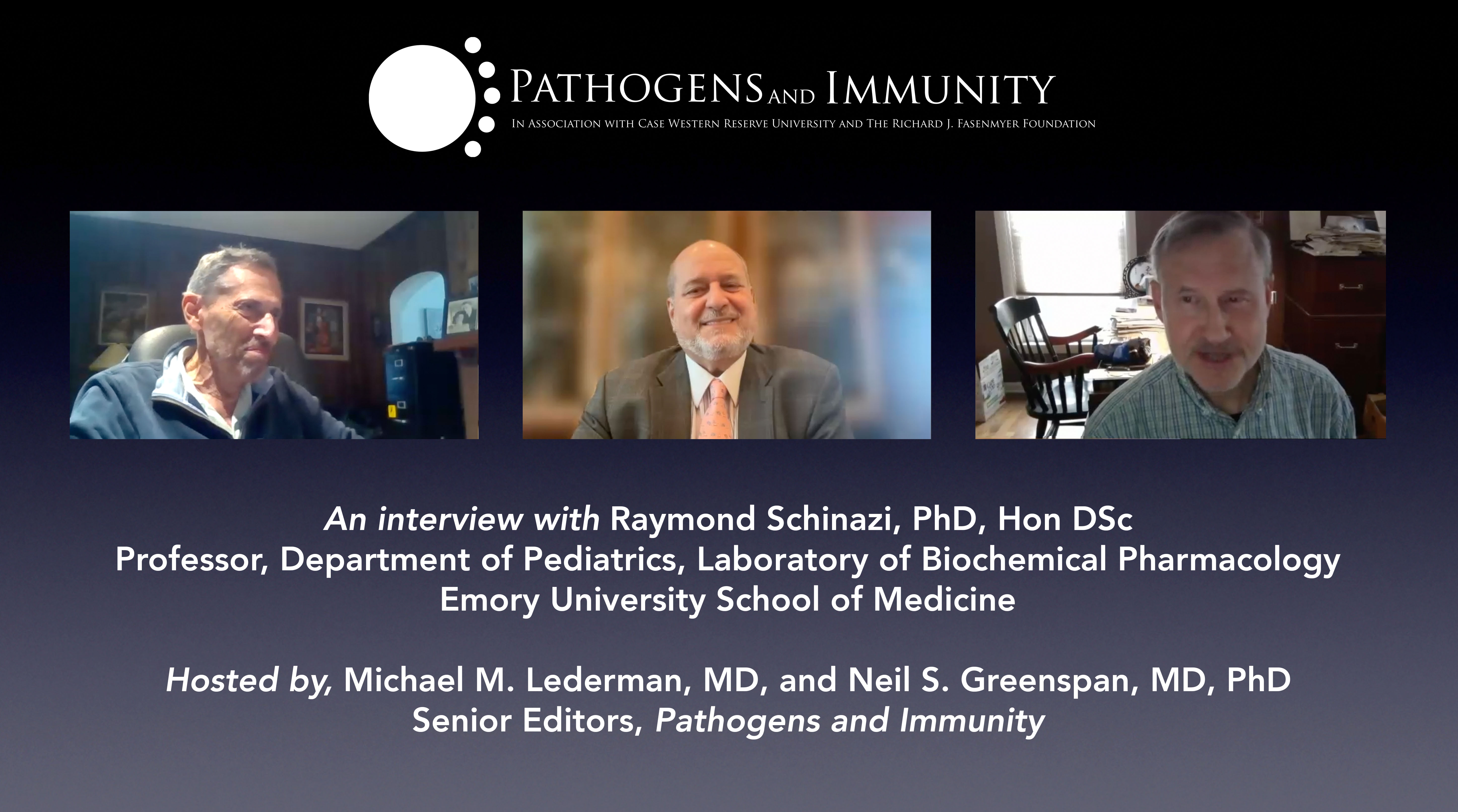 Lederman MM, Greenspan NS. Raymond Schinazi Discusses the Discovery of Early Antiretroviral Agents and Sofosbuvir. Pathogens and Immunity. 2023;8(1):77–92. doi: 10.20411/pai.v8i1.624