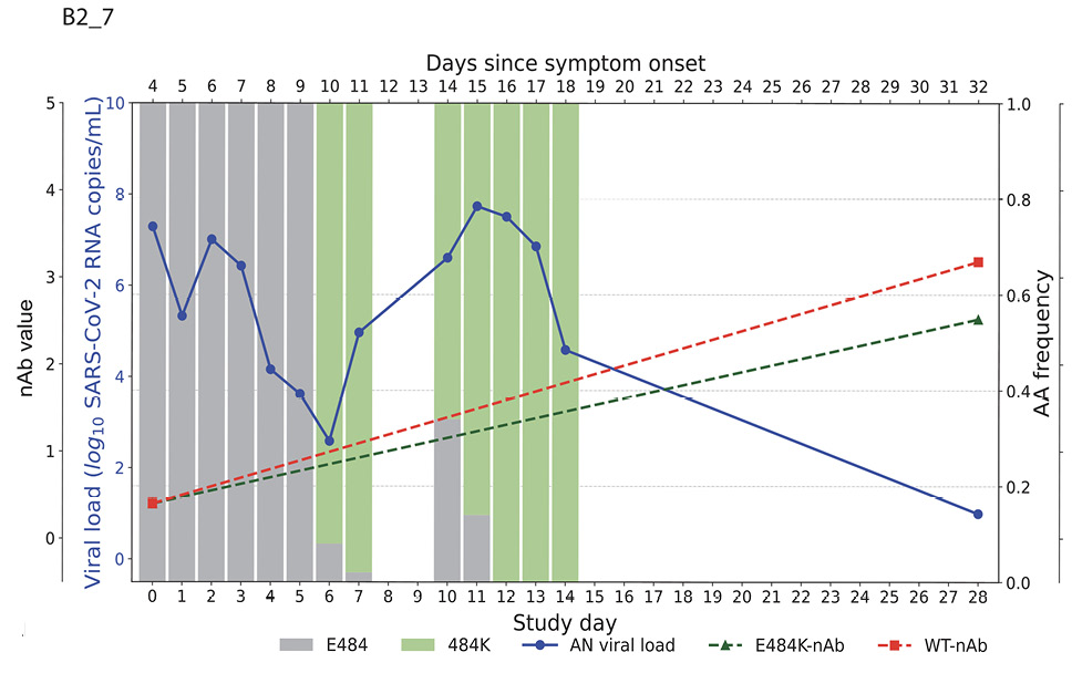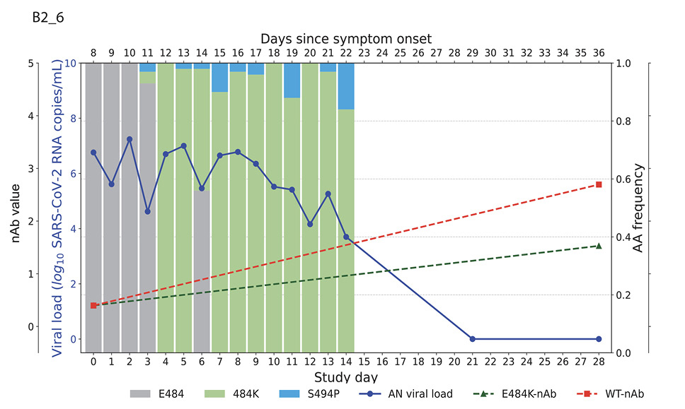 Conclusion: Emerging drug resistance after SARS-CoV-2-specific mAb therapy led to a heightened host neutralizing antibody response to the mAb-resistant variant that was associated with eventual viral clearance. This demonstrates the interplay between the antiviral treatment-directed viral evolution and subsequent host immune response in viral clearance.