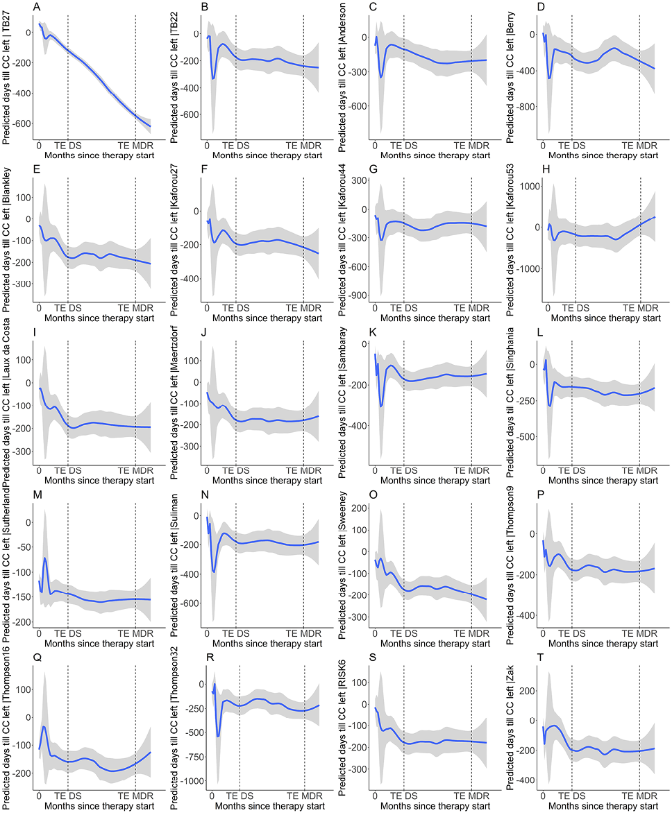 Results: The identification cohort included 149 patients split into a training and a test cohort, to develop a multistep algorithm consisting of 27 genes (TB27) for predicting the remaining time to culture conversion (TCC) at any given time. In the test dataset, predicted TCC and observed TCC achieved a correlation coefficient of r=0.98. An external validation cohort of 34 patients shows a correlation between predicted and observed days to TCC also of r=0.98.