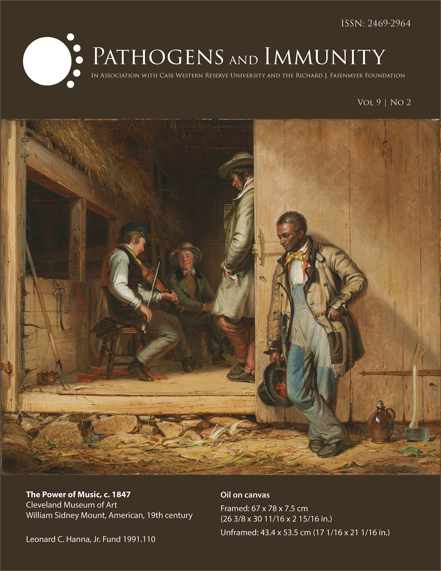 *Due to a template error on our pdfs, articles published from May 20, 2016 to June 24, 2022 incorrectly state the copyright is held by Pathogens and Immunity. Copyright of all articles is held by the authors of each article as noted in the above copyright policy.